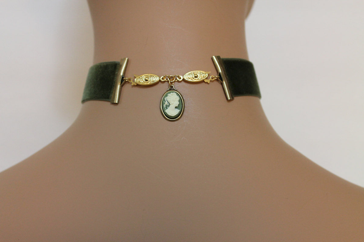 Green Velvet Victorian Cameo Choker