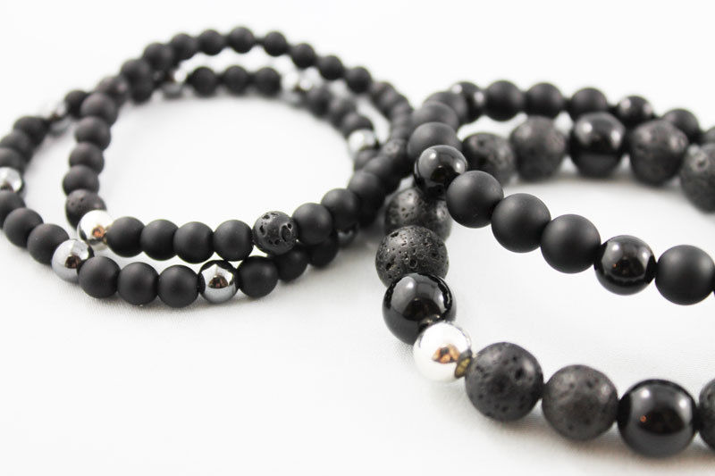 Mens Black Onyx Lava Bead Bracelet