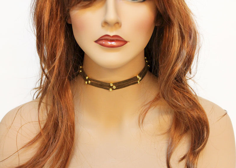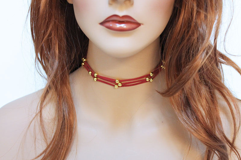 This listing is for the red choker pictured in the first three pictures. The fourth picture shows the choker in medium brown suede and the fifth picture shows it in black suede with gold beads. All sold separately.