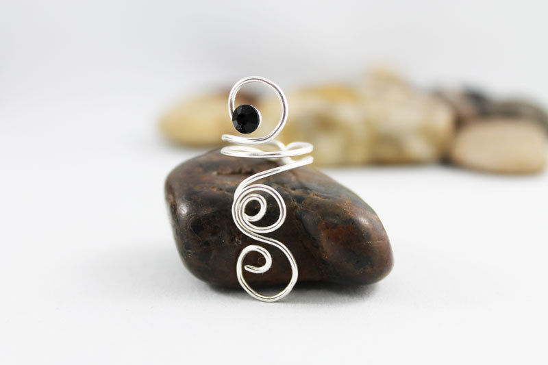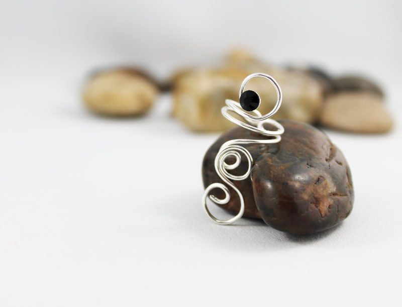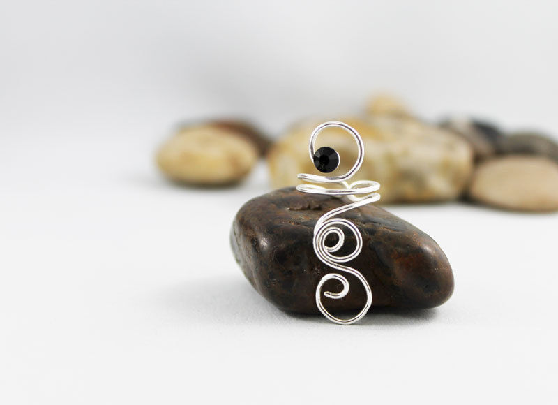 With the larger span of swirls measuring 36mm, this pretty ring is adjustable so it can be either a toe ring or a knuckle ring. Great either way! Made from non tarnishing silver with a 5mm black crystal.